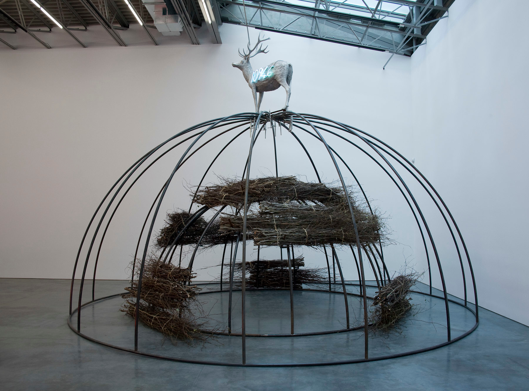 Mario Merz was born in 1925 and died in 2003 in Milan, Italy. He was awarded the Praemium Imperiale, Tokyo; the Oskar Kokoschka Prize, Vienna; and the Arnold Bode Prize, Kassel, Germany. Merz was the subject of numerous solo exhibitions at institutions around the world, including Fundação de Serralves, Porto, Portugal; Welhelm Lehmbruck Museum, Duisberg, Germany; Fundación Antoni Tàpies, Barcelona; and Solomon R. Guggenheim Museum, New York. His work is included in many prominent public collections, including Centre Georges Pompidou, Paris; Hirshhorn Museum and Sculpture Garden, Washington D.C.; The Museum of Modern Art, New York; Stedelijk Museum, Amsterdam; Walker Art Center, Minneapolis; and the Art Institute of Chicago, Illinois, among many others. The Fondazione Merz in Turin, Italy, regularly displays both the works of its namesake and sponsors exhibitions by living artists.